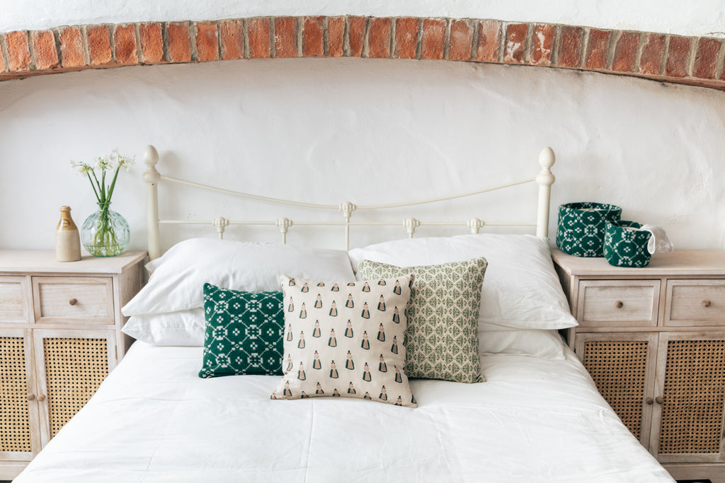 About the collection: Our range of printed fabrics are designed in-house and inspired by our surrounding countryside, nature and flora. We design our fabric in the heart of rural Carmarthenshire, just outside Llandeilo. The fabric is then printed in the UK, before being turned into cushions, lampshades and table runners here in South Wales.