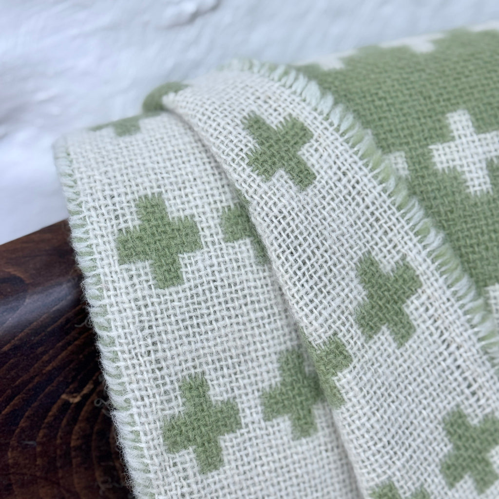 This beautiful woollen throw is woven in beautiful green shade - with a celtic cross design running through it.