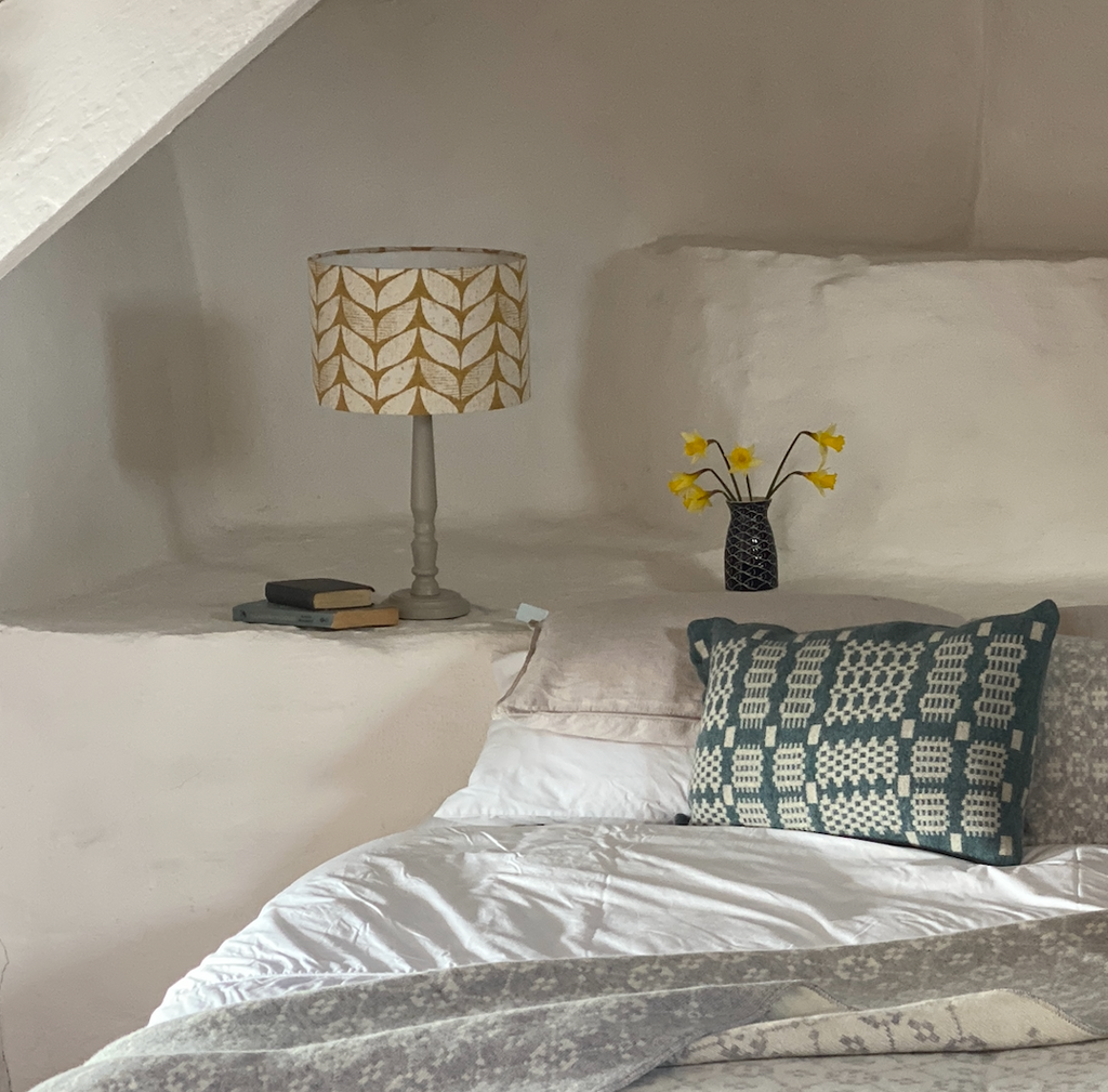About the collection: Our range of printed fabrics are designed in-house and inspired by our surrounding countryside, nature and flora. We design our fabric in the heart of rural Carmarthenshire, just outside Llandeilo. The fabric is then printed in the UK, before being turned into cushions, lampshades and table runners here in South Wales.